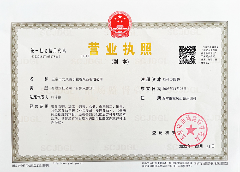 五常市龍鳳山長粒香米業(yè)有限公司 地址:五常市龍鳳山鎮(zhèn)樂園村